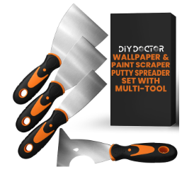 DIY Doctor 4-Piece Wallpaper Scraper Set (1 Pack) – Includes 3 Strippers & 1 Multifunctional Putty Scraper – Paint Scraper Tools in Sizes 1.5", 2.5", 3.5" – For Wallpaper Removal, DIY & Painting Tasks
