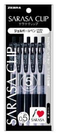 Zebra Sarasa Clip P-JJ15-BK10 Gel Ballpoint Pen, 0.5, Black, 10 Pieces